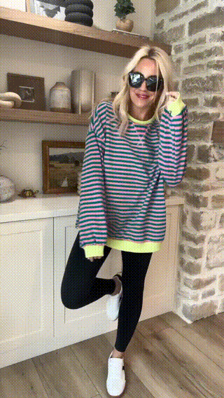 Brighten up your wardrobe with this eye-catching striped sweatshirt! Made from soft, comfortable fabric, it pairs easily with leggings or jeans. It also looks great layered under jackets, coats, vests, or cardigans, offering endless styling possibilities.